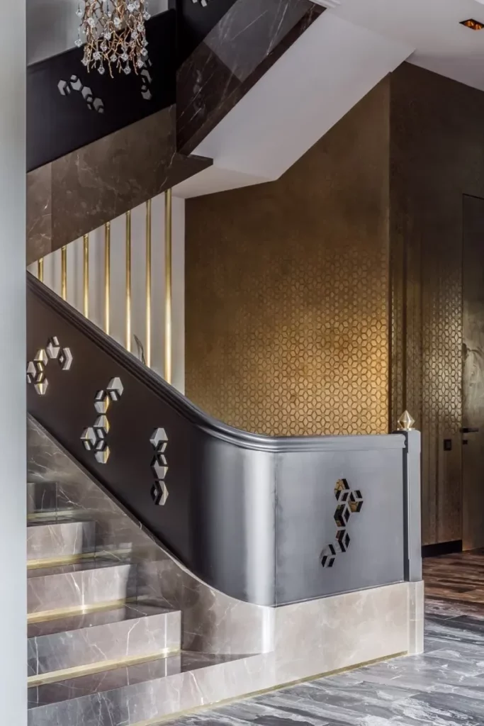 Чтобы довершить образ помещения, отдельно обсудите с дизайнером вид и форму столбиков для лестницы, балясин. В мастерской по обработке камня СДК Групп вам предложат на выбор несколько популярных видов опор из камня. Перила также могут различаться по размеру, быть закругленными или с острыми углами. Особым изыском считаются перила с изгибами.