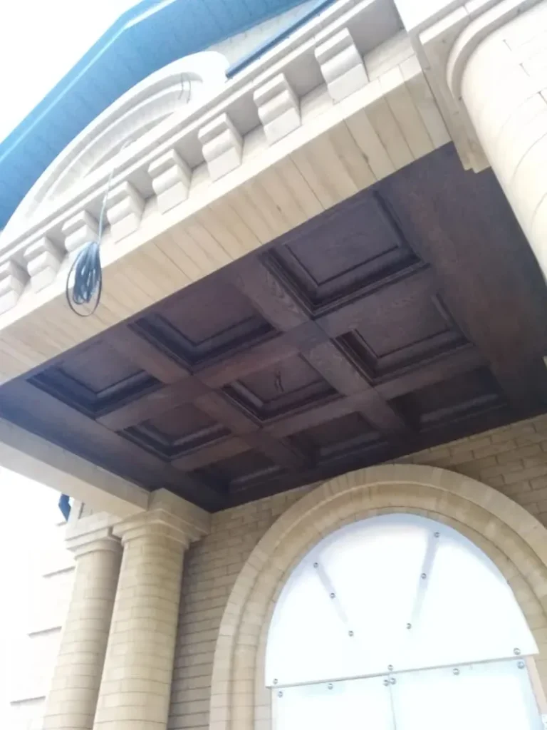 Это могут быть не только прямые балки, но и оригинальное оформление потолков с помощью балок, срезанных под углом. А также, мы можем изготовить трехмерные конструкции из балок.