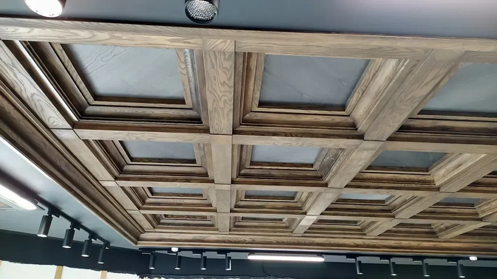 Кессонные потолки – это декоративная архитектурная деталь, представляющая собой систему прямоугольных или квадратных ячеек, встроенных в потолок. Этот дизайн элемент придает помещению элегантность и изысканность, добавляя визуальный интерес к верхней части комнаты.