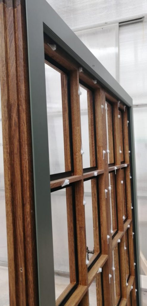 Премиальные дерево-алюминиевые окна из массива дуба с рустикальным профилем и алюминиевыми накладками – это наша собственная разработка. Такие окна может изготовить далеко не каждый производитель. Особая технология сварки металла позволяет избежать видимых швов на лицевых поверхностях. Такое решение выгодно отличает наши дерево-алюмиевые окна от конкурентов. Больше информации по ним – ниже на странице.